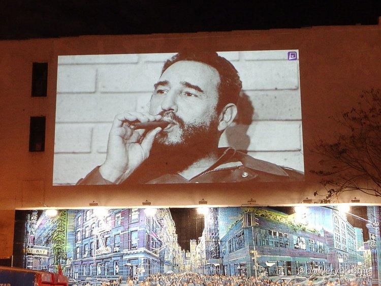 For the last couple nights, there’s been a slideshow projection of the notable deceased. Eighteen images, including David Bowie, Prince, photographer Bill Cunningham, Gene Wilder, Muhammad Ali, and Carrie Fisher (and, controversially, Fidel Castro). A life-size a reminder of the overzealous grim reaper that was 2016; death certainly was the star this year.