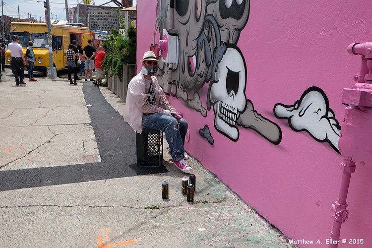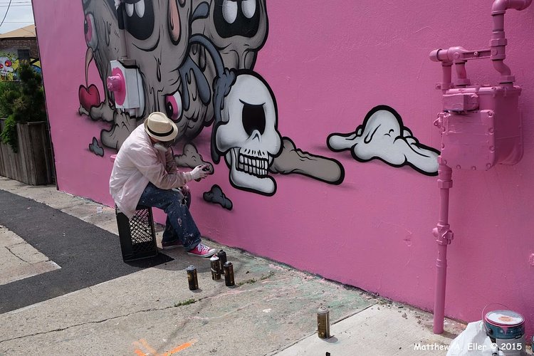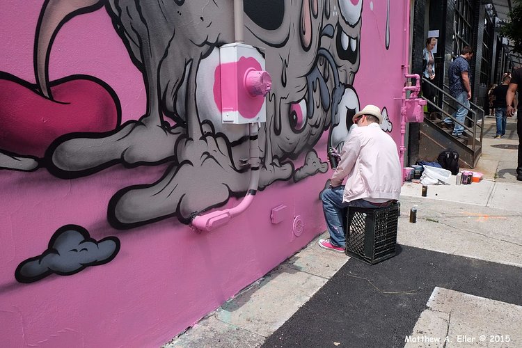 The new mural was created just this past weekend at the Bushwick Collective block party while attendees got to watch the artist at work.