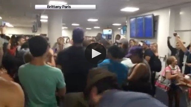 “Wowowowow the casts of The Lion King and Aladdin are stranded at the airport (like me) and just performed wow,” tweeted one traveler.