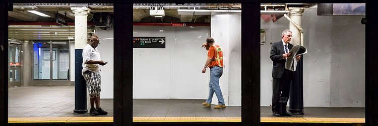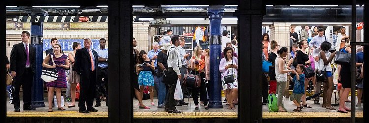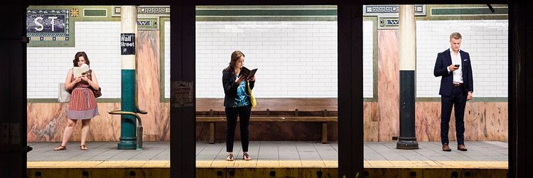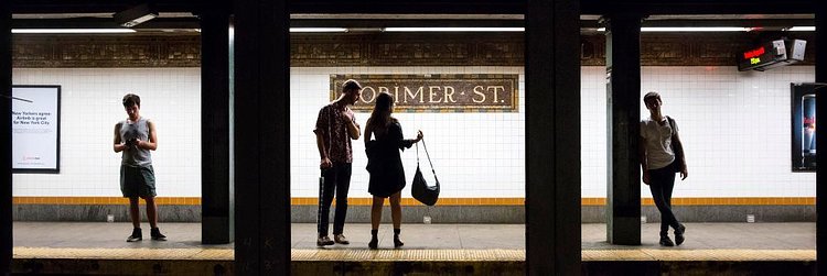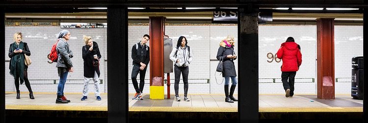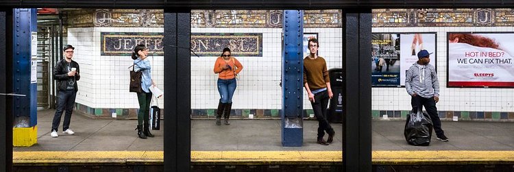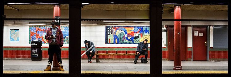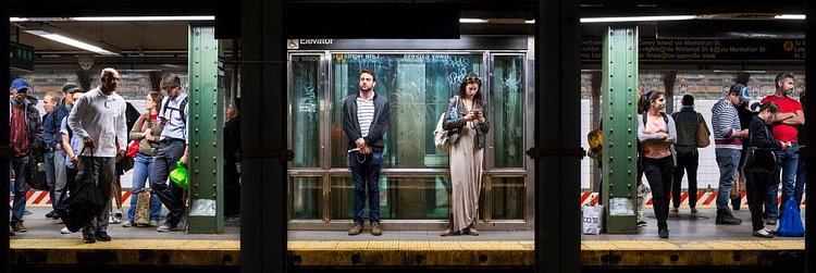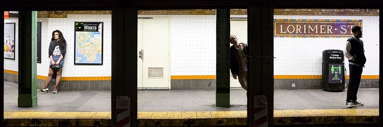 Local professional photographer Natan Dvir has this fantastic series of photographs that captures New York City subway platforms and the people waiting on them for trains. Dvir uses the steel beams that hold up the street level to create a natural three-panel layout, creating three striking portraits in each photo. You could interchange them between photographs and still come out with a great shot. While all are great, we think the one with Batman brooding in Union Square particularly stands out.