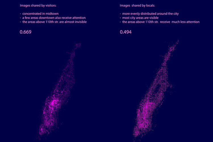 The Inequaligram Project is a study by the City University of New York which aims to look at geolocations of Instagrams posted in New York City to see the difference between what locals and tourists share on the social network.