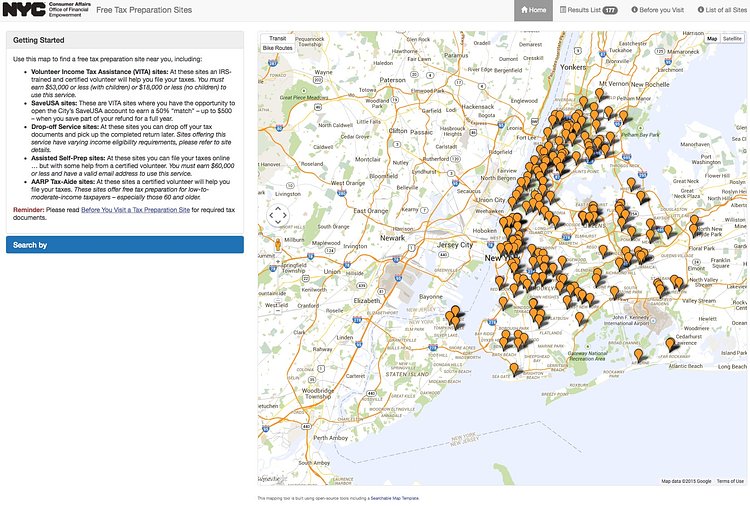 The New York City Department of Consumer Affairs' Office of Financial Empowerment (say that 5 times fast!) has released a new interactive map online which will help you locate free tax preparation sites around the 5 boroughs. The map has