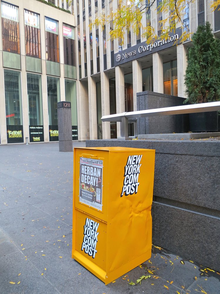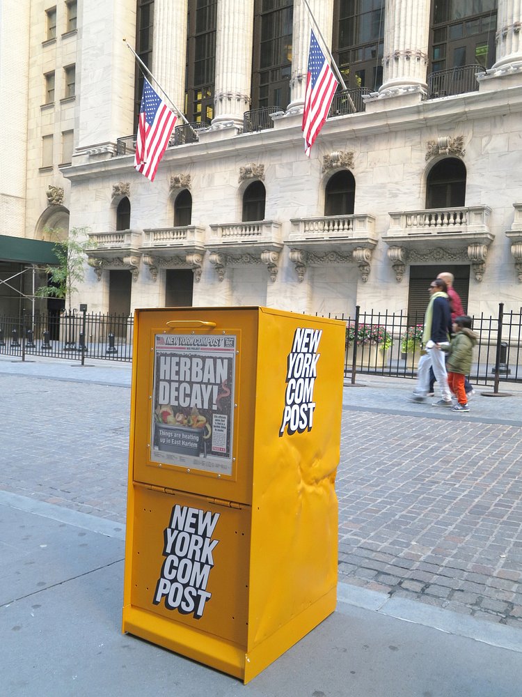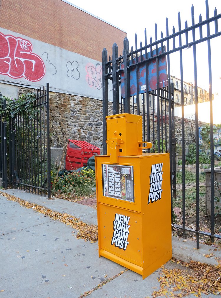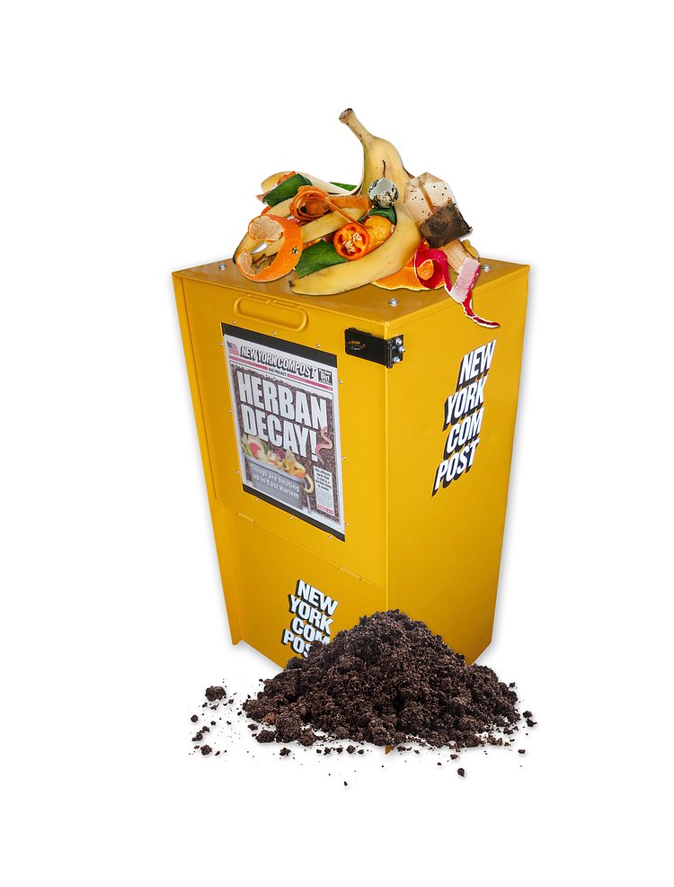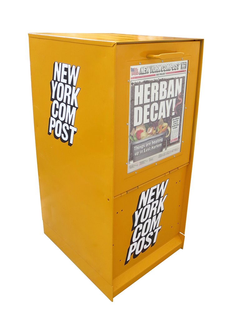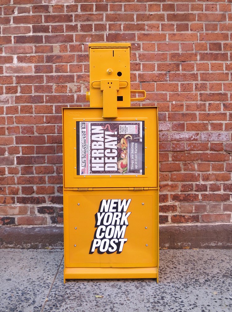 The branding on the boxes is almost a carbon copy of the New York Post, but somehow looks better on the compost project bins than the tabloid newspaper.