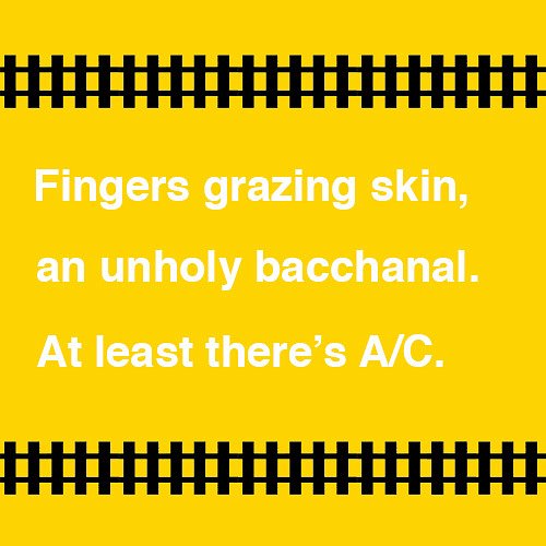 For the average New Yorker, riding the MTA Subway is a way of life. Through all of the random delays, "sick passengers", and trains just downright not showing up, we deal with it all. These haiku poems poke fun at the system we so dearly rely on, and remind us of our masochistic relationship with this city.