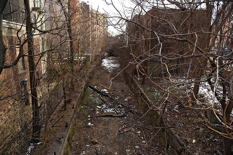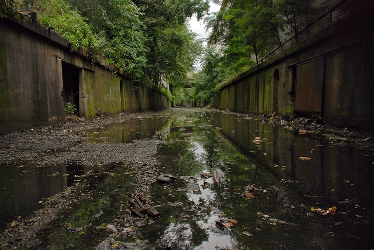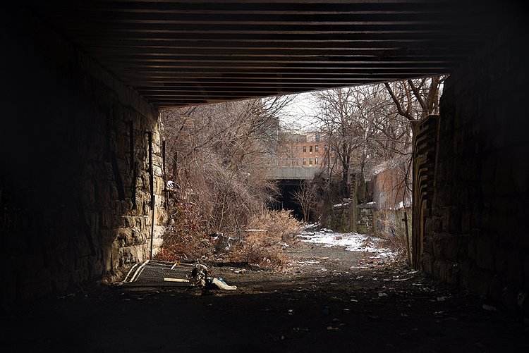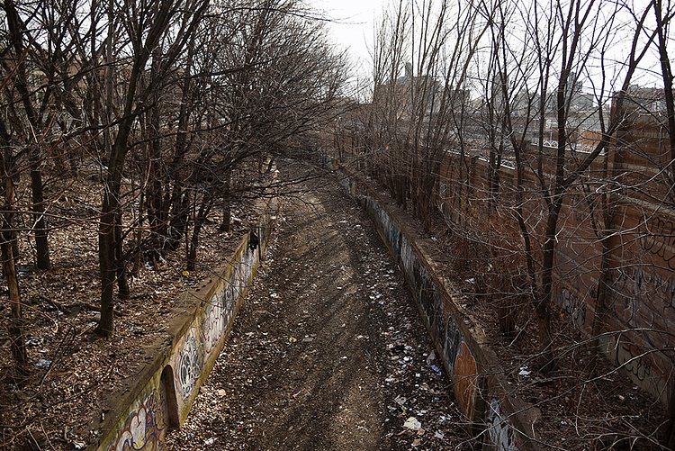 Dating back to 1842, this decommissioned train line has been a dumping ground for decades, with layers of pollution and neglect heaped along its route. Traveling below street level for two miles from Port Morris through Mott Haven, Morrisania, and Melrose, its history has always been murky to neighborhood residents, who have nicknamed different sections of the tracks The Bronx Swamp and The Hole, and over the years, the abandoned train line has been been variously described as a "bug-infested basin," a "blight on the community," a "filthy concoction of standing water and garbage" and a "needle ridden Bronx drug den."
