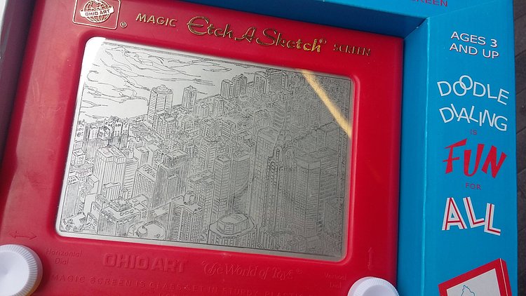 Etch-a-Sketch artist Bryan Lee Madden recently created this incredible detailed piece of single stroke art featuring an aerial shot of the Chrysler Building and Midtown Manhattan.