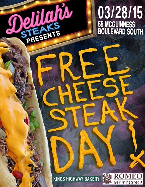 Yes, you heard correctly, the good folks at Greenpoint’s awesome steak joint Delilah’s will be giving out free cheesesteaks all day long, from 11am-10pm. This staggeringly generous offer is open to walk-ins only and restricted to one cheesesteak sandwich per person (so no creeping back in with that fake beard at dinner time).