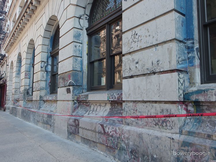 Our friends at Bowery Boogie recently went by to check out the graffiti-scubbing progress, and most of the decades-old layers of spray paint have been stripped away completely.