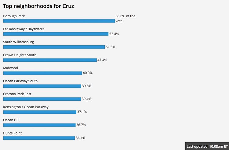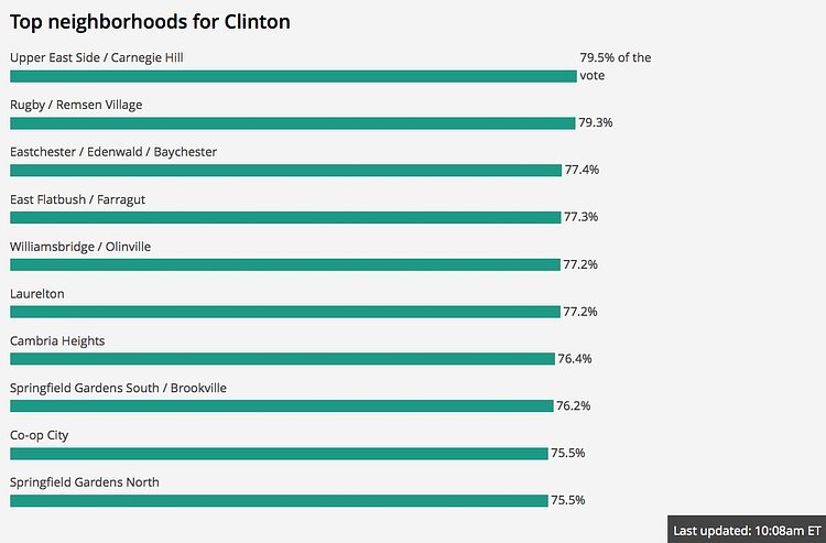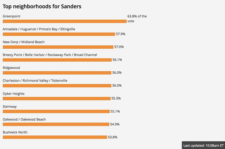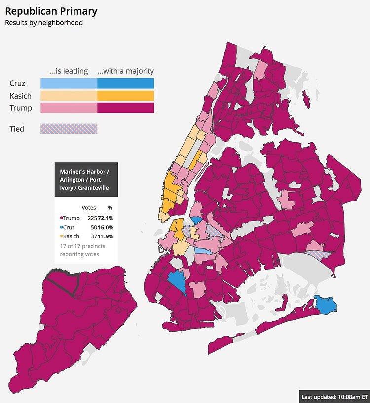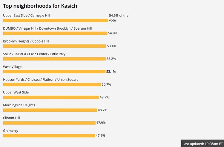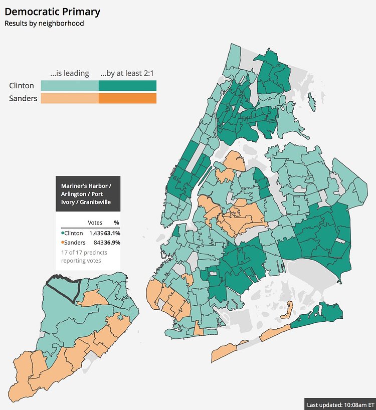 As the votes come in for the New York state presidential primary, we're watching how the candidates fared in New York City neighborhoods.