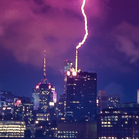 Luckily, photographer and graphic designer Jimmy Kastner (previously) was in the area with his gear and was able to grab this amazing shot of lightning striking the Bank of America Tower at 1 Bryant Park.