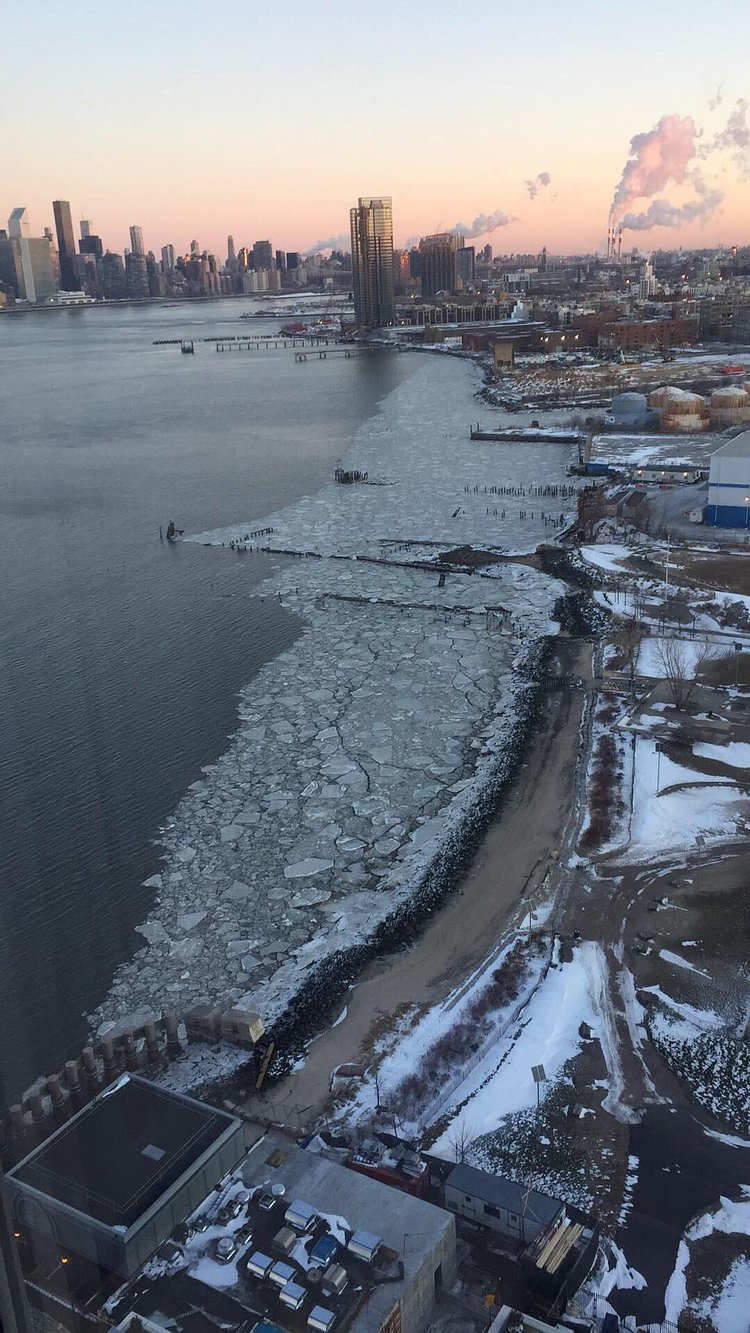 Last week, we asked whether or not this current cold spell would freeze over the East River like it did in 1871, and we may be reaching that point. Here is a recent photo of the ice situation on the East River, captured by redditor dullurd this morning.