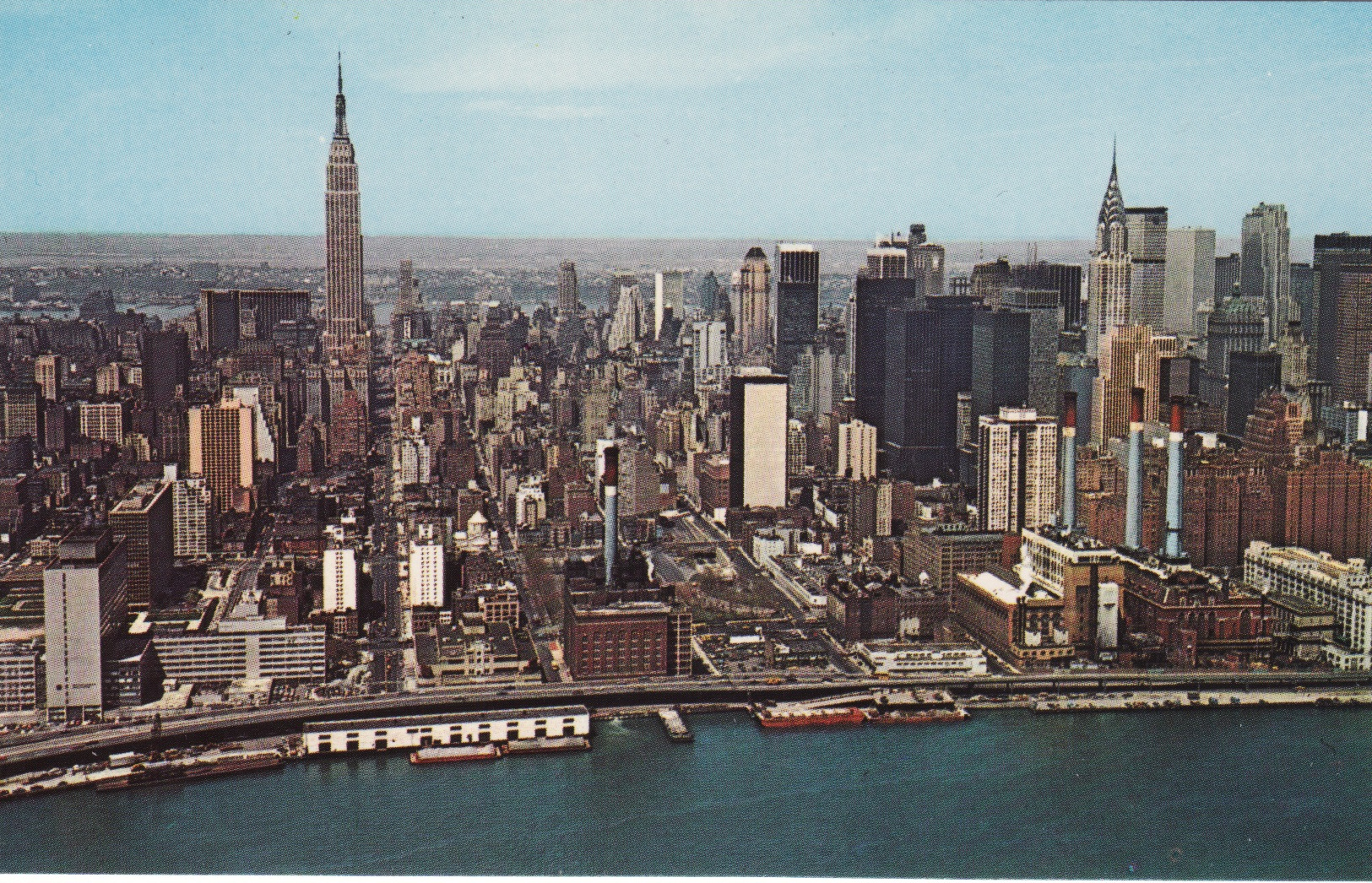 Looking west in 1965 you can see that nothing challenges the Empire State Building in terms of dominance of height