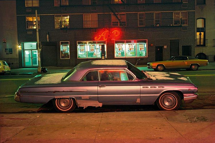 Born and bred in New York City, photographer Langdon Clay developed a fascination with the City's lonely cars in the mid-1970s. Between 1974 and 1976, Clay hit the streets of New York capturing colorful cars in front of colorful storefronts for an impressive collection of photos.