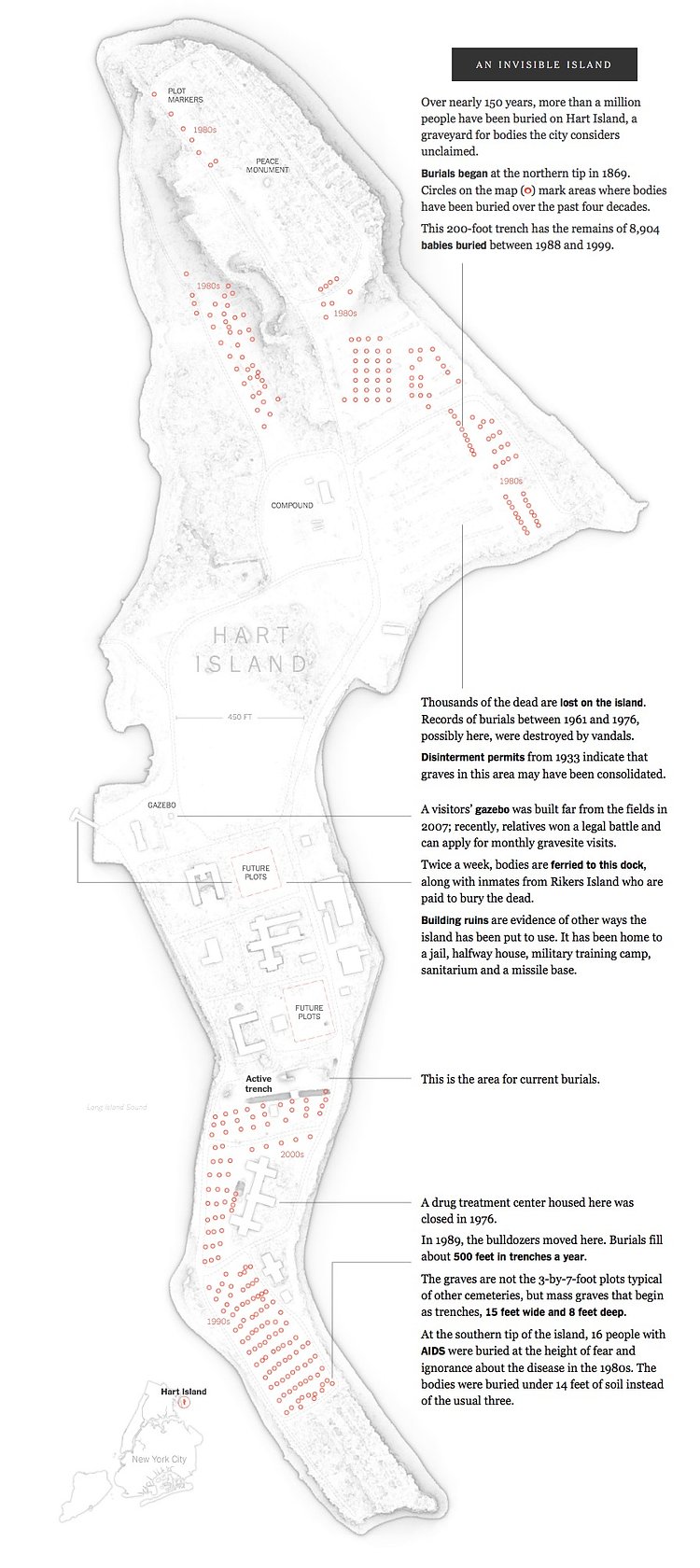 The New York Times published an amazing interactive article this morning that details the millions of unmarked graves on New York City's mass-burial site, Hart Island.