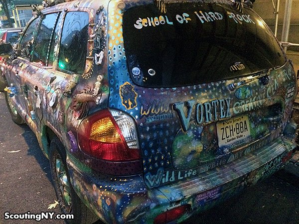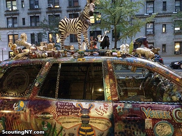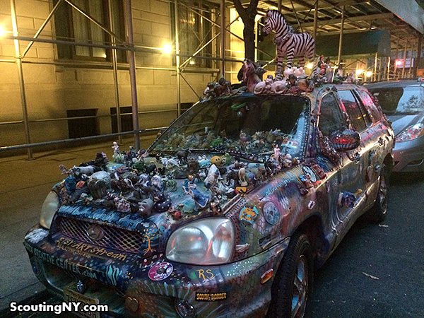 Upper West Side has permanently adorned this poor Hyundai with thousands of trinkets, ornaments, animals and other chotchkies.