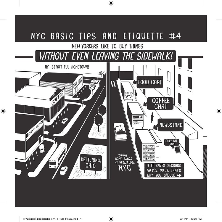 NYC Basic Tips & Etiquette by comic artist Nathan W. Pyle is a comedic guide for transplants and tourists that explains how life works in the City. For us locals, the guide can be a funny reminder that the rest of the country doesn't necessarily operate by the same rules.