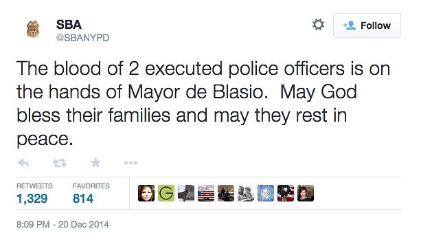 With the horrific Brooklyn shooting yesterday, you would think the City and it's Police Department would stand shoulder to shoulder condemning the event and putting differences aside to show solidarity and support for the families of the officers who where killed. Instead, during the Mayor's press conference as he walked by, the NYPD union reps literally turn their backs on De Blasio. The Union blames Mayor De Blasio for the officer deaths, stating that by not taking a pro-NYPD line in the Eric Garner issue, he encouraged an anti-NYPD rhetoric in the City, leading to this shooting in Brooklyn yesterday.