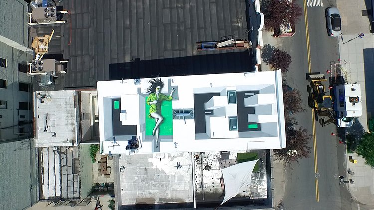 Our friends at Street Art News were able to grab some drone of the piece, entitled Parklike.
