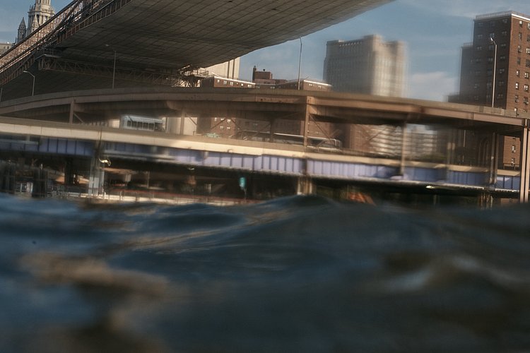 It aims to recontextualize New York City by moving away from the rich language of the street photography we know so well and framing Manhattan as the geographic island that it has always been. From the water surrounding the island, new perspectives of the urban jungle appear. The architecture is juxtaposed with unfamiliar buildings and spaces rarely seen reveal themselves above splashing waves.