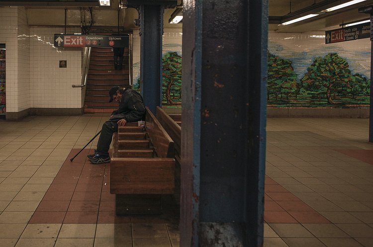NYC subway never closes. That’s why some homeless take refuge here, underground. Some of the above do as well, but they are not. A shared space with six millions strangers, everyday. And there, in the thin invisible film that covers your body, is your home. Wind down, you sleep, you dream.