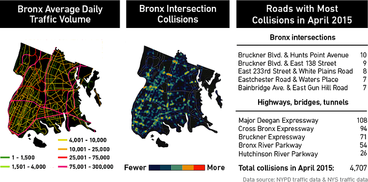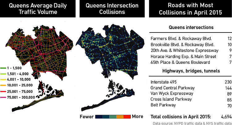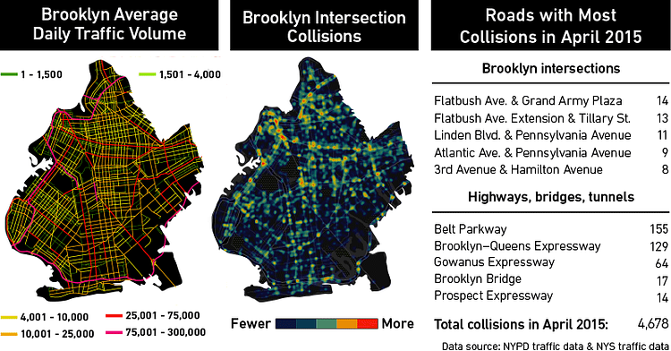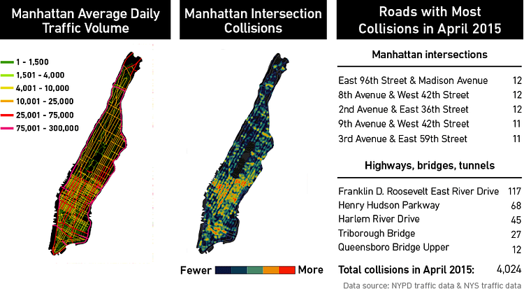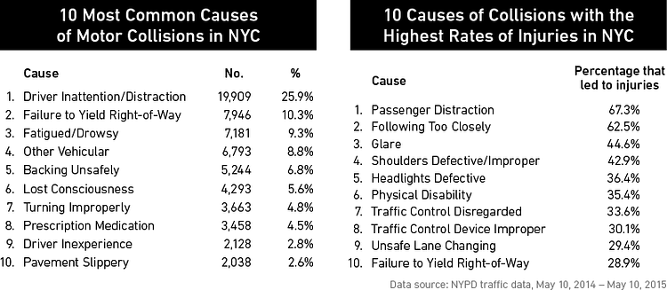 We thought we would use the traffic accident data that have accumulated over the last 12 months, which include more than 200,000 collisions across the five boroughs, to reveal where crashes happen, who they involve, what are their causes, and – perhaps – whether Mayor Bill de Blasio’s Vision Zero plan is on track to achieving its ambitious goal of eliminating all traffic deaths in the Big Apple by 2024.