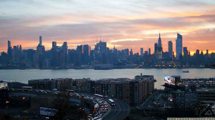 A sunrise time-lapse on the winter solstice of the Lincoln Tunnel with morning rush hour traffic. Watch the colors change over the city from night to day as morning rush hour commuters slowly crawl into Manhattan.