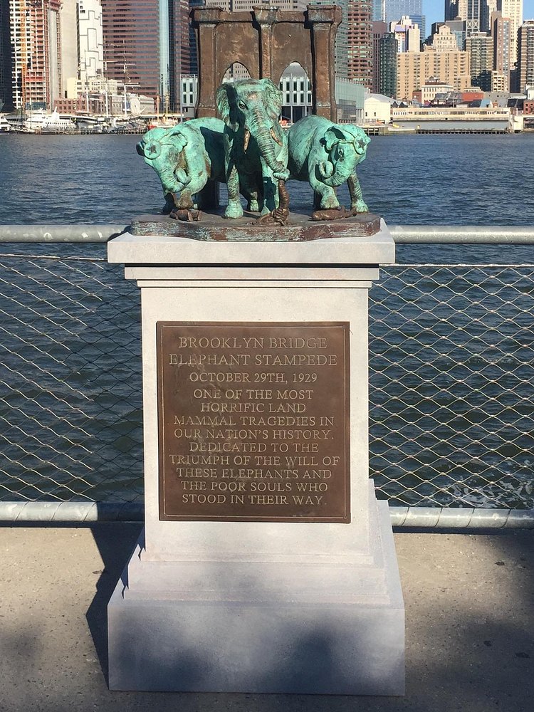 A new memorial went up in Brooklyn Bridge Park this week to honor the lives lost in the Brooklyn Bridge Elephant Stampede of 1929, however, just like the Staten Island Octopus Disaster of 1963, it never really happened!