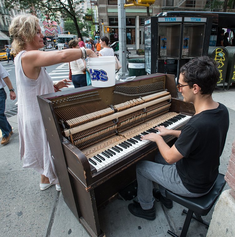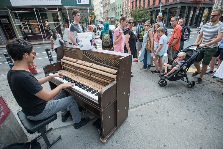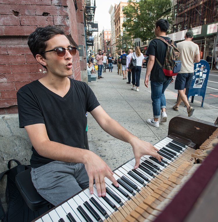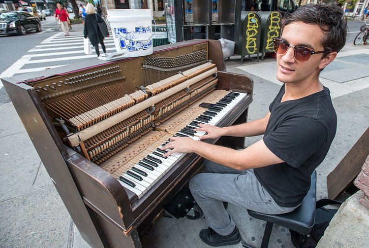 23-year-old Washington Heights resident Kevin Shoemaker is a classically trained pianist and composer who often busks in public for some extra cash and fun. Though when Shoemaker busks, he needs to bring his 500-pound piano with him.