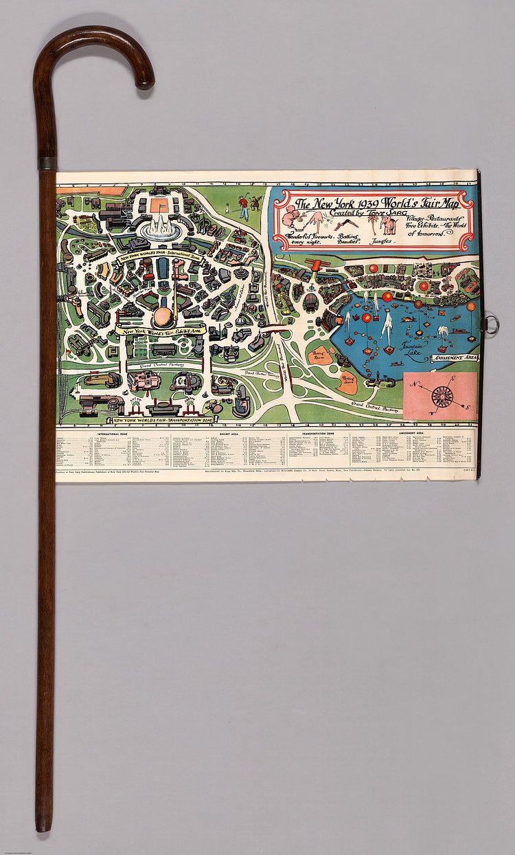 With such a large fair covering such a large area, merchandise was created with maps on them to help people get around, like this cool combination map and walking cane created by illustrator Tony Sarg.