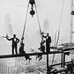 This vintage photograph from 1930 shows a brave construction worker carrying a heavy sack as he crosses a steel beam high above ground level, working on the 71-story neo-gothic skyscraper at 40 Wall Street.
