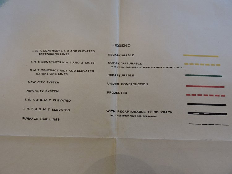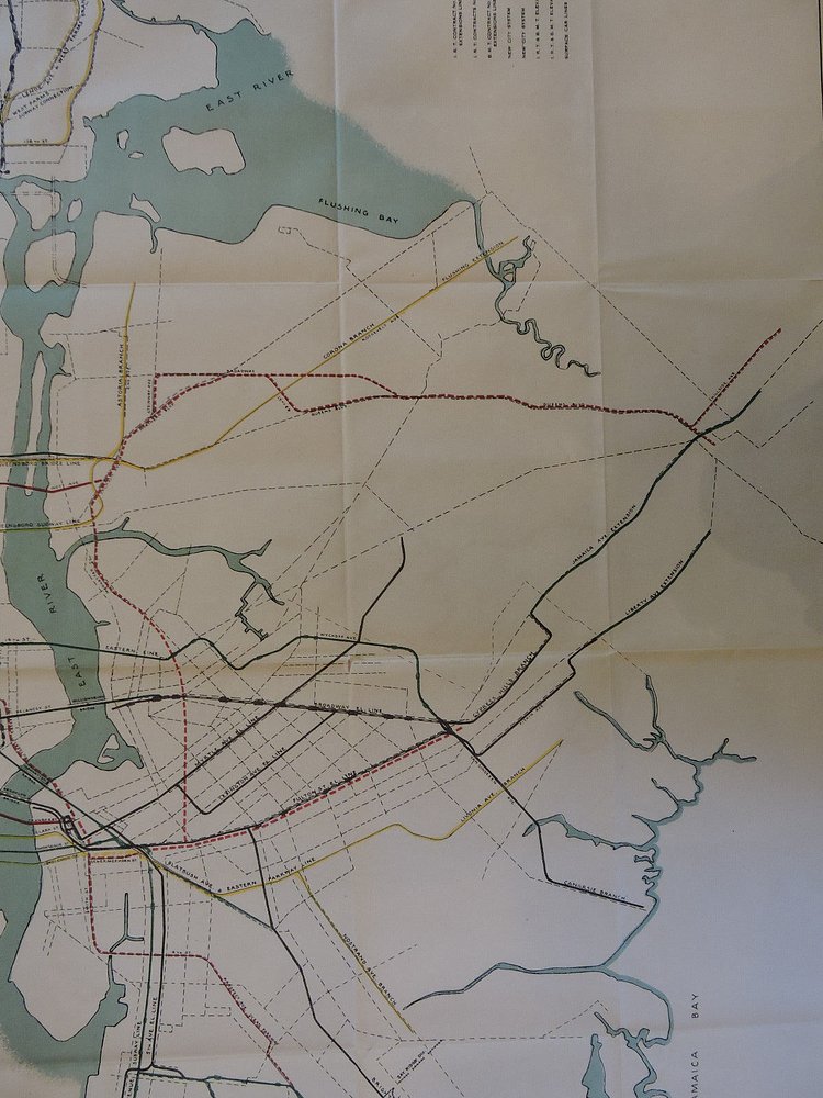 What’s most interesting about this map is that it shows alternative routes for the Brooklyn and Queens lines; the Queens Blvd Line does in fact split under Northern Blvd but there is a plan here to have the express and local tracks split once again along 69th St. While no explanation is given I can only asume this had to do with the proposed Windfield Spur, a local branch of the Queens Blvd Line which was to zig zag through Maspeth and Middle Village beforeheading to Rockaway Park. A station and tunnel provisions were built at Roosevelt Ave station for this line so this original alignment could have been related.