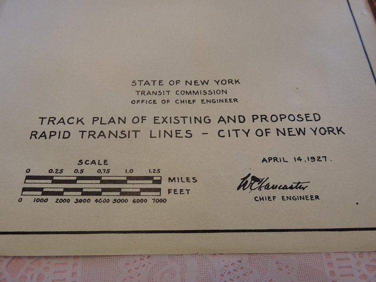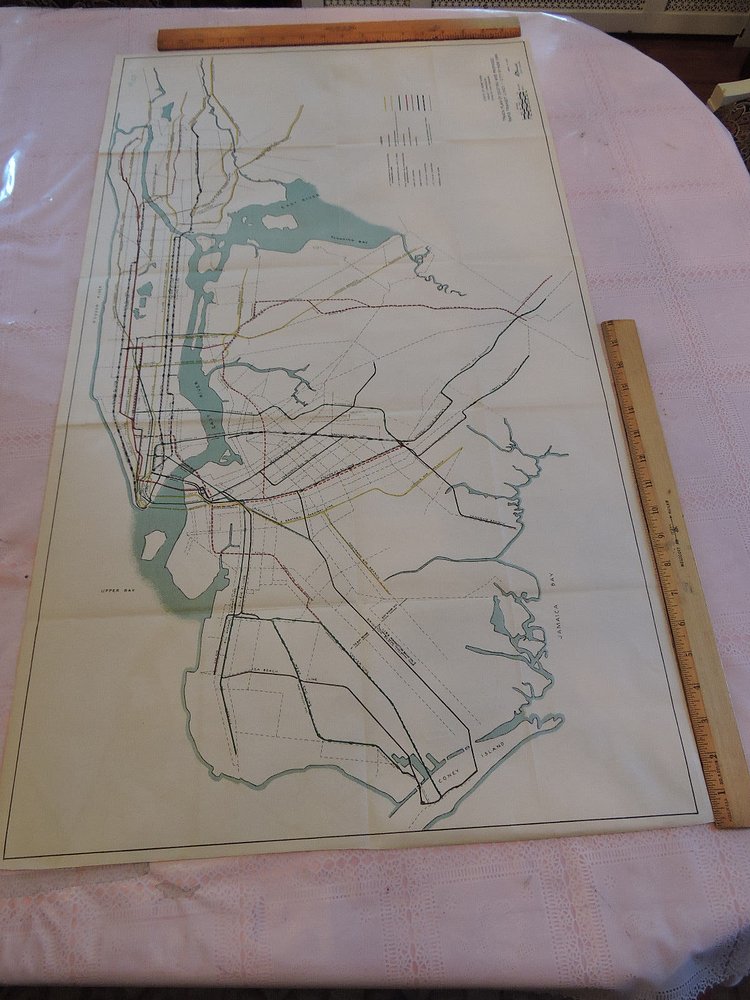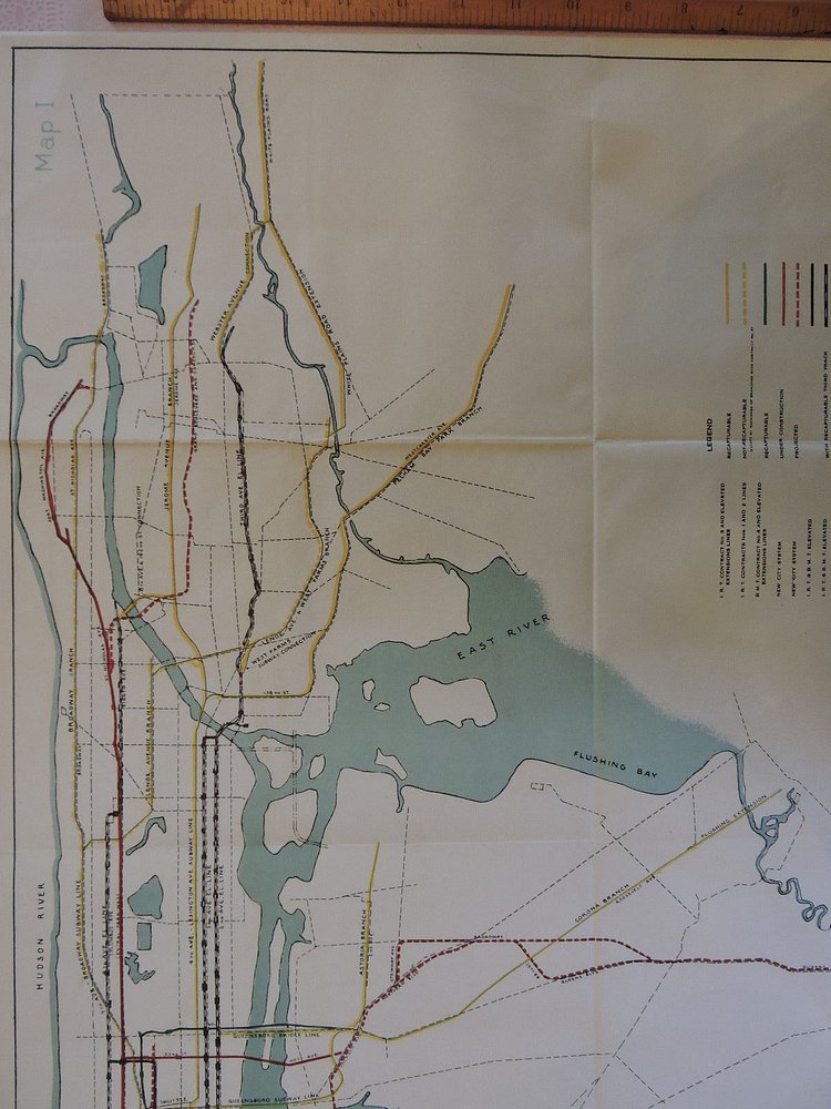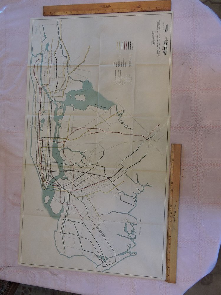 This vintage map from 1927 shows the comprehensive track plan of existing and proposed rapid transit lines in New York City.